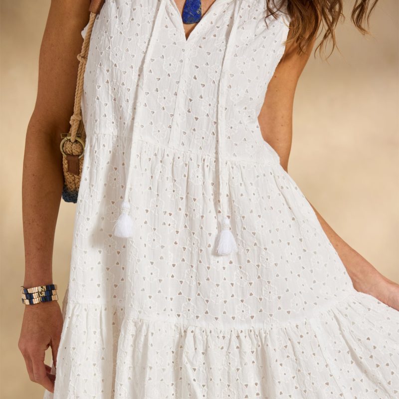 The ultimate one-and-done outfit. our Aisha Printed Dress is so effortless. you’re going to want one in every color and pattern! This gauzy knee-length popover features pretty pintucking. an all-over floral print with border details and a front tie with wooden beads. Cotton. Machine wash. Imported. Exclusive. Sizes XS (0-2). S (4-6). M (8-10). L (12-14). XL (16-18). XXL (20-22). Approx. 36l.