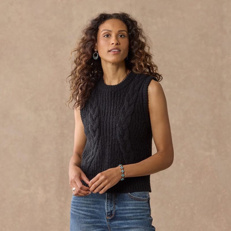The loftiest combination of chunky rib knit and top applied cable stitch makes our sweater vest’s contouring so flattering. With rib trim. So versatile. wear on its own or with a layer underneath. Acrylic/nylon/polyester. Hand wash. Imported. Exclusive. Sizes XS (0?C2). S (4?C6). M (8?C10). L (12?C14). XL (16?C18). XXL (20?C22). Approx. 20l.