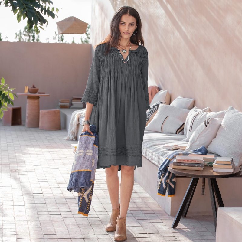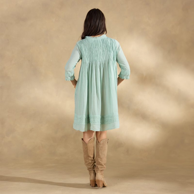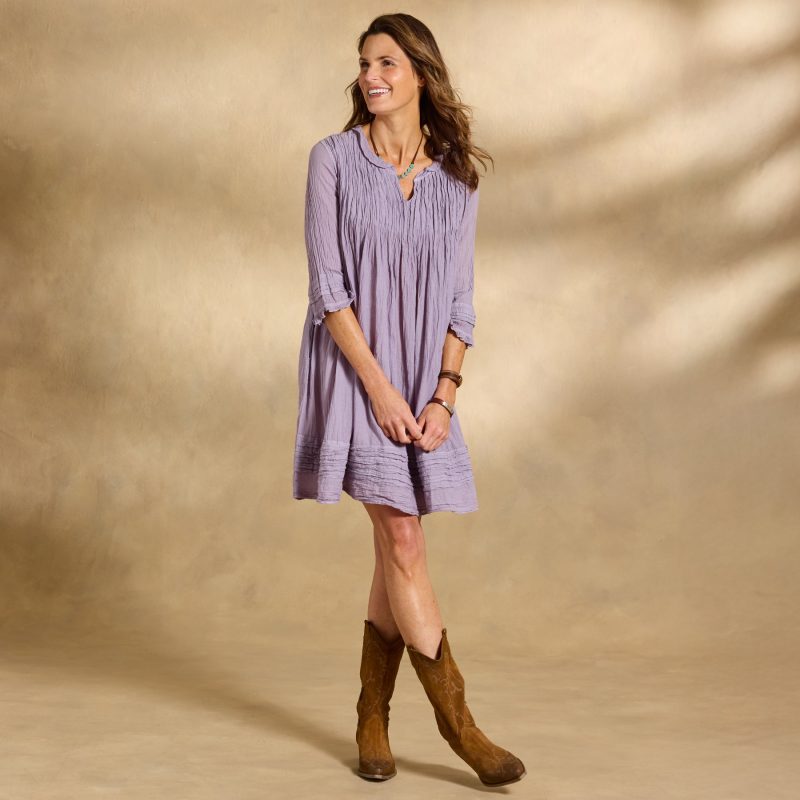 Our easy and flattering A-line crinkle dress is so romantic featuring unique pleating details. ruffles at the notch V-neck and two pockets. Cotton. Hand wash. Imported. Sizes XS (0 to 2). S (4 to 6). M (8 to 10). L (12 to 14). XL (16 to 18). Approx. 34.75l.