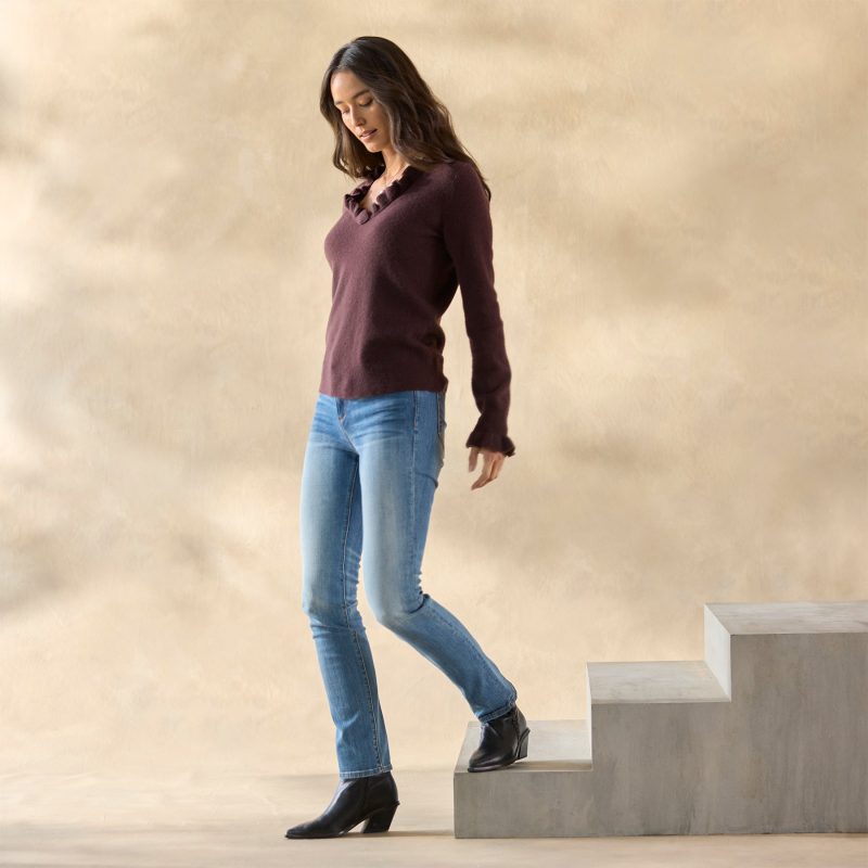 An update to a Sundance favorite. now in luxurious cashmere. Lightweight and cozy. with gentle. feminine ruffles at neckline and cuffs. Rib trim. Hand wash. Imported. Exclusive. Sizes XXS (00). XS (0–2). S (4–6). M (8–10). L (12–14). XL (16–18). Approx. 21.5l.