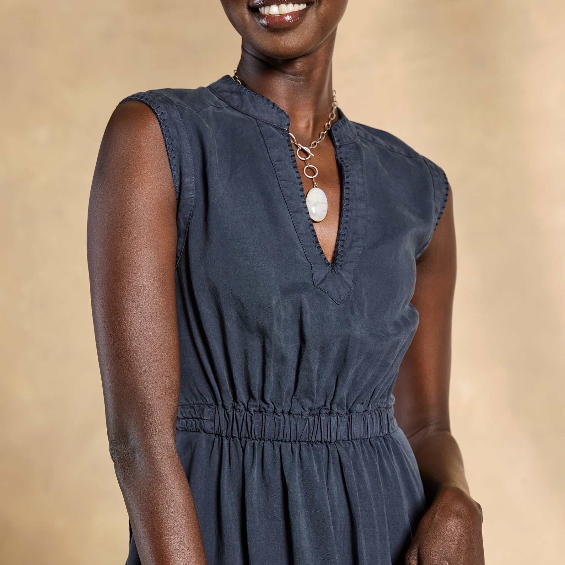 Elevate the everyday in our sleeveless Imari Dress with peek-a-boo opening at the lower back??flawless and feminine. Side seam pockets. adjustable tie at the waist. Tencel?. Machine wash. Imported. Exclusive. Sizes 0?C14. Approx. 45l.