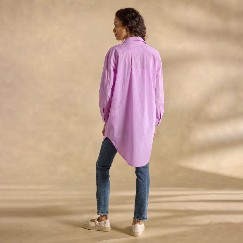 Just the right blend of comfort and style our oversized tunic is simple yet elegant—finished in special details. Chest patch pocket with pick-stitching. two side seam pockets and contrast print cuffs. Cotton. Hand wash. Imported. Exclusive. Sizes XS (0–2). S (4–6). M (8–10). L (12–14). XL (16–18). XXL (20–22). Approx. 33l.