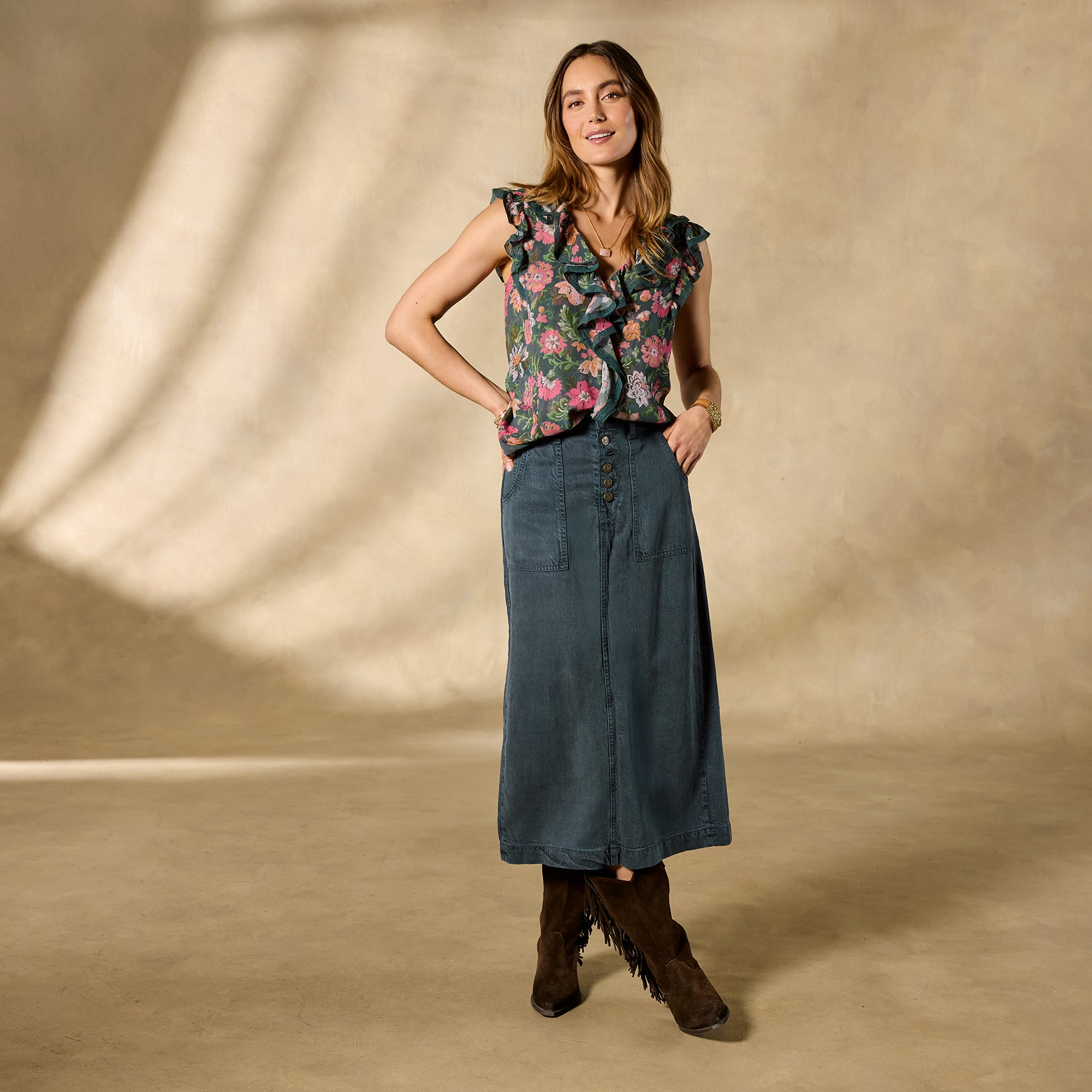 Elegant flutter sleeves. lace accents and a flirty flounce around the neckline add a fluid beauty to this soft floral top. Matching camisole included. Viscose. Machine Wash Imported. Exclusive. Sizes XS (0–2). S (4–6). M (8–10). L (12–14). XL (16–18). XXL (20–22). Approx. 25l.