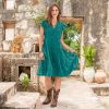 Stunning open eyelet sets the stage on our ruffle tiered dress with scalloping at the sleeves and hem. lovely embroidery at the placket. Removable slip included. Cotton. Hand wash. Imported. Exclusive. Sizes XS (0-2). S (4-6). M (8-10). L (12-14). XL (16-18). XXL (20-22). Approx. 36l.